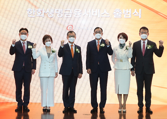 한화생명금융서비스가 출범하며 국내 보험업계에 제조(보험상품 개발)와 판매 채널을 나누는 ‘제판(製販) 분리’가 본격화됐다. 구도교(왼쪽 네 번째) 한화생명금융서비스 대표이사는 2일 “고객 만족도, 고객 선호도가 가장 높은 회사로 만들겠다”는 목표를 밝혔다. 한화생명금융서비스는 전날 63한화생명빌딩에서 출범식을 열고 국내 최대 규모의 보험 판매전문회사로서 첫발을 내디뎠다.