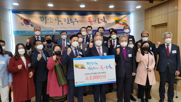 한교총 사회정책위원회는 이날 미얀마 민주주의를 지지하고 이를 후원하기 위해 후원금 2000만 원을 전달했다. 이 후원금은 사회정책위원장 오 목사가 시무하는 새로남교회에서 마련했다. 한교총은 이후에도 추가 기금을 마련하여 지원할 예정이다. 현재 국내에는 3만2000여 명의 미얀마인들이 다양한 영역에서 활동하고 있다.
