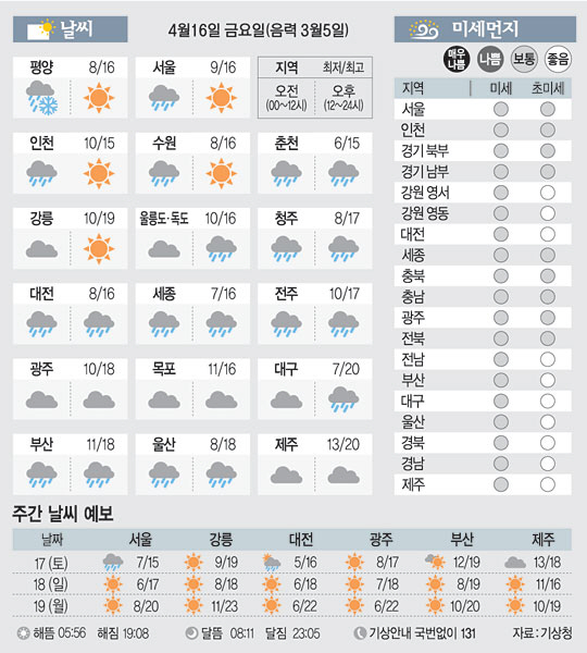 <날씨이야기>4월16일 금요일(음력 3월5일)