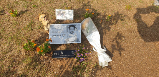 어린이날을 맞은 5일 오전 경기 양평군 서종면 하이패밀리 안데르센 공원묘지(사진)에 잠들어 있는 정인이를 찾았다. 해맑게 웃는 사진 아래 검은 명패에 ‘정인’이라는 두 글자가 적혀 있었다. 출생과 사망의 ‘2019.6.10∼2020.10.13’ 숫자가 아래로 이어졌다. 492일의 짧은 삶, 살아있었다면 두 번째 맞을 어린이날이었다.
