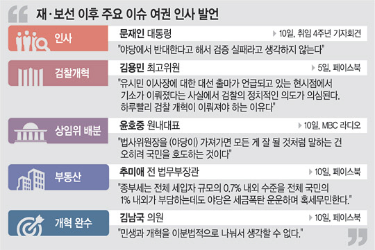 민심 이반의 주요 원인으로 꼽히는 부동산 정책도 가닥을 잡지 못하고 있다. 특히 종합부동산세 완화를 반대하는 목소리가 만만치 않다. 추미애 전 법무부 장관은 “야당은 세금폭탄을 운운하며 혹세무민하고 언론은 세상에 없는 한국에만 있는 세금이라는 왜곡보도로 민심의 눈을 끝도 없이 흐려왔다”고 주장했다. 국회 법제사법위원장 자리가 핵심인 상임위 배분에서도 윤호중 원내대표는 ‘절대 불가’ 방침을 고수하고 있다.