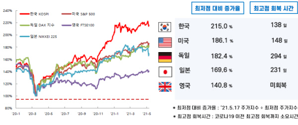 지난 4년간 정책추진 성과 발표도 있었다. 금융위는 ‘175조 원+α 규모의 민생·금융안정 패키지’를 통해 코로나19발(發) 금융위기 확산을 조기에 차단했다고 말했다. 특히 증권시장안정펀드 등 시장 안정 대책으로 전 세계에서 가장 빠르고 강한 주식시장 반등을 이뤄냈다고 평가했다. 한국 코스피의 경우 코로나19 이전의 최고점 회복까지 걸린 시간이 138일로, 미국 S&P 500(148일), 일본 NIKKEI 225(231일), 독일 DAX 지수(294일) 등 주요국보다 짧았다. 가계부채 증가세의 안정적 관리, 상시적·선제적 기업구조조정, 혁신금융·모험자본 공급, 혁신·뉴딜 분야 마중물 공급 기반 마련, 개인 금융생활 편의성 제고, 서민·취약계층 지원, 금융소비자 보호 강화 등도 주요 성과로 꼽혔다