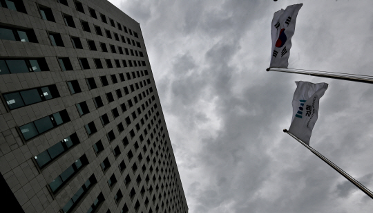 박범계 법무부 장관이 주도하고 있는 직접수사 축소 등 검찰조직 개편과 대대적 인사를 앞두고 검찰이 반발하고 있는 가운데 28일 오전 서울 서초동 대검찰청 청사 위로 짙은 먹구름이 끼어 있다.