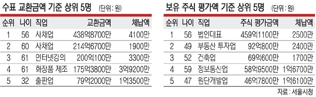 이와 별도로 시는 국내 28개 증권사를 통해 고액체납자 380명이 가진 1038억 원 상당의 주식을 확인했다. 이 중 284명의 보유 주식 842억 원은 즉시 압류 조치했다. 이후에도 체납자들이 세금을 내지 않으면 시는 주식 강제 매각 등을 진행할 예정이다.