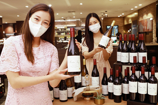 24일 서울 중구 롯데백화점 본점 지하 1층 와인 매장에서 모델들이 미국산 와인인 ‘마틴 레이 와인’을 선보이고 있다.