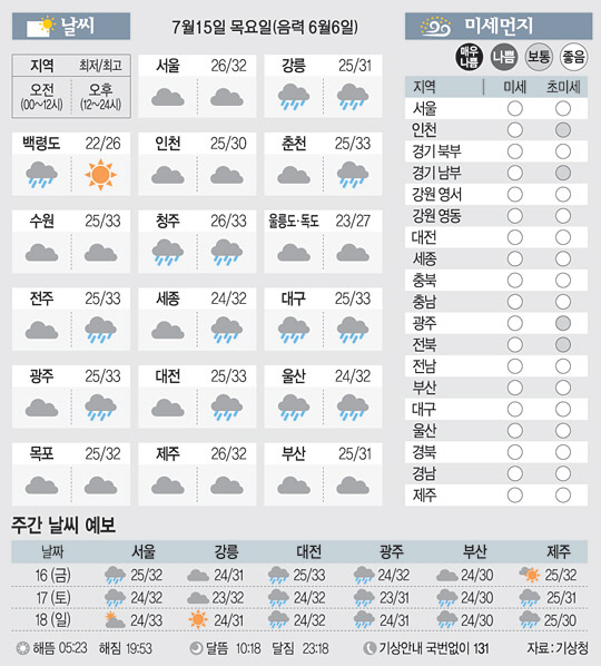 <날씨이야기>7월15일 목요일(음력 6월6일)