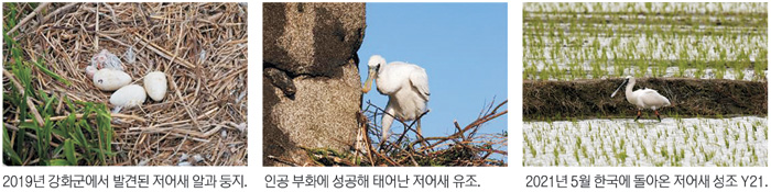 Y22와 Y23 두 마리는 월동지로 이주하지 않다가 지난겨울 추위를 견디지 못하고 죽은 것으로 확인됐다. Y24는 중국으로 이동한 뒤 올 3월까지 쑤저우시 타이후에서 서식한 것으로 알려졌다. Y25는 관찰 정보가 확인되지 않았다. 박용목 국립생태원장은 “이번 인공증식 저어새의 우리나라 복귀는 멸종위기종인 저어새의 보전을 위해 의미 있는 연구 결과”라고 말했다.