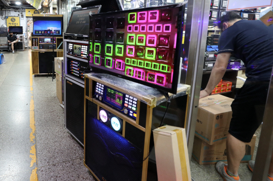 지난 4일 서울 종로구 세운상가에 노래방 기기들이 쌓여 있다. 국세청 ‘100대 생활업종’ 월별 통계에 따르면 코로나19 확산 영향 등으로 5월 말 기준 전국 노래방 수는 1년 전보다 1554곳(5.2%) 감소했다.