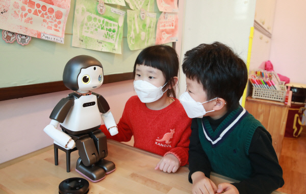 이 사업은 지난해 4월 한국로봇산업진흥원 주관으로 시행된 ‘로봇활용 사회적 약자 편익 지원 공모사업’ 중 하나다. 구는 디지털 정보 격차를 완화하고 어린이집 원아들이 효과적으로 비대면 교육을 받을 수 있도록 올 1월부터 구청 직장 어린이집과 구립 문성어린이집에 교육용 로봇을 시범 배치했다. 어린이집 원아들이 실감 나게 동화책을 읽어주는 ‘로봇 선생님’에게 큰 호응을 보이면서 대상지를 확대해 현재 지역 내 어린이집 113곳에서 로봇 교육 프로그램을 운영하고 있다.