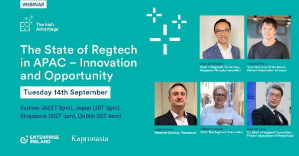 행사에선 아시아 대표 금융정보 조사기관인 카프로나이사 (Kapronasia)의 조셉 제리넥(Josef Jelinek) 리서치 부문 이사가 아시아 태평양 지역의 레그테크 시장 현황에 대해 발표한다. 이어 데보라 영(Deborah Young)호주 레그테크협회장, 치예킷 치용(Chye Kit Chionh)싱가포르 핀테크 협회장, 다케시 키토(Takeshi Kito) 일본 핀테크협회 이사회 부회장, 브라이언 탕(Brian W Tang)홍콩 핀테크협회 상임이사가 각국의 규제 실태와 향후 전망 등에 대해 토론을 이어갈 계획이다. 현재 아시아 시장을 활발하게 개척하고 있는 아일랜드 레그테크 기업 5곳의 경쟁력도 확인할 수 있다.