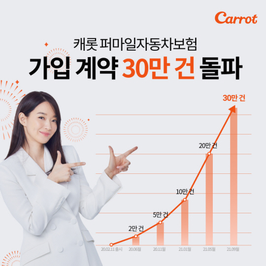 퍼마일자동차보험은 주행거리를 측정해 자동차를 실제 운행한 만큼만 결제하는 시스템을 도입한 보험이다. MZ세대(20~30대)를 중심으로 합리적인 소비를 선호하는 트랜드에 힘입어 빠르게 기존 시장에 자리를 잡았다. 안정적 보상 서비스를 경험한 이용자들의 후기가 이어지면서 신생보험사 가입에 대한 심리적 장벽을 낮출 수 있던 점도 가입 30만 건 돌파에 영향을 미쳤다는 평가다. 이런 성장세는 미국에서 운영 중인 유사한 보험인 ‘메트로마일’과 ‘루트’가 출시 5년간 각각 10만 가입자와 15만 가입자를 모은 사실과 비교해도 빠르다. 캐롯은 “운전자의 안전 운전 정도에 따라 포인트를 지급하는 ‘퍼마일 멤버스’도 도입해 안전문화 확립에 기여하고 있다”며 “앞으로도 IT(정보기술)와 결합된 자동차 보험 서비스를 지속적으로 선보일 예정”이라고 밝혔다.