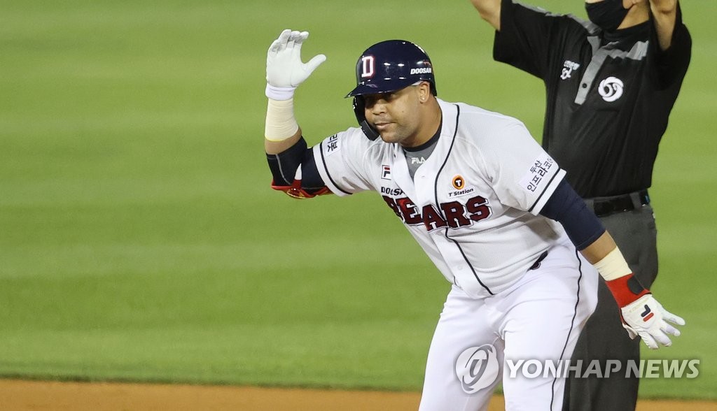 두산은 8일 서울 잠실구장에서 롯데와 벌인 2021 신한은행 쏠(SOL) KBO리그 홈경기에서 안타 10개와 볼넷 10개를 묶어 14-5로 대승했다.