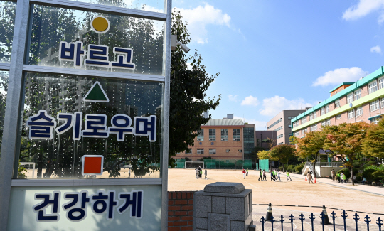 서울 양천구 갈산초등학교 정문 투명방음벽에 이 학교의 교훈이 적혀 있다.