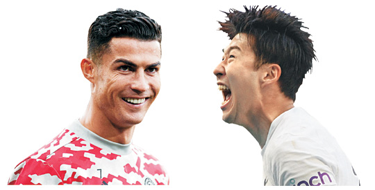 손흥민(29·토트넘 홋스퍼·오른쪽 사진)이 ‘우상’ 크리스티아누 호날두(36·맨체스터 유나이티드·왼쪽)와 잉글랜드 프로축구 프리미어리그(EPL) 첫 맞대결을 펼친다. 황희찬(25·울버햄프턴 원더러스)도 호날두와의 만남을 고대하고 있다.