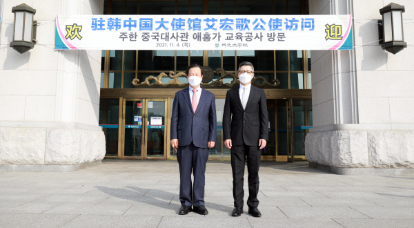 지난 9월 부임 이후 국내 대학 가운데 첫 방문지로 선문대를 선택한 아이홍거 공사는 이날 황선조 총장과 간담회를 갖고 중국어학과 학생 및 중국 유학생 대상으로 특강을 했다.