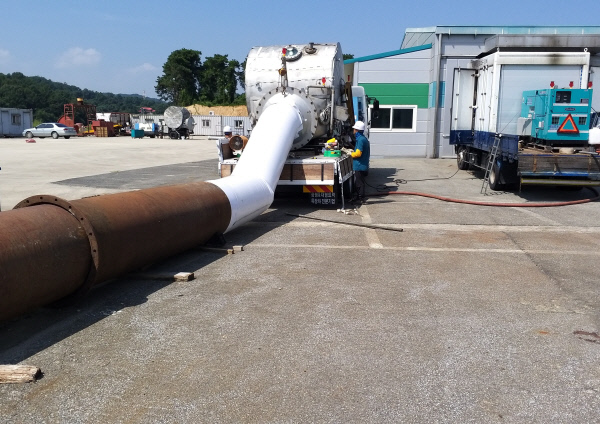 GS건설은 11일 상수도관을 뚫지 않고도 보수할 수 있는 친환경 신공법(상수도관 비굴착 보수공법·사진)을 개발해 환경부로부터 ‘신기술인증서’를 받았다고 밝혔다. 환경 신기술 인증은 국가가 기술력을 인정하는 우수한 환경기술에 한해 인증서를 발급해 기술개발 촉진 및 환경산업 육성에 이바지하는 제도다.