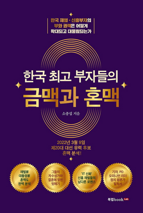 급격한 시대 변화를 반영하듯 이번 개정 증보판은 삼성·현대 등 전통적인 대기업집단 가문의 금맥과 혼맥을 업데이트하는 데 그치지 않고 카카오·네이버·엔씨소프트·넥슨·우아한형제들 등 대표적인 정보기술(IT)기업 창업자들의 가계도 담았다. 아울러 역대 대통령 가문뿐 아니라 20대 대통령선거에 나선 이재명 더불어민주당 후보와 윤석열 국민의힘 후보 가문도 포함했다. 저자는 “혼맥은 금맥”이라며 “요즘은 많이 달라졌다고 하지만 보이지 않는 ‘그들만의 리그’가 여전히 존재한다”고 말한다. 424쪽, 1만9800원.