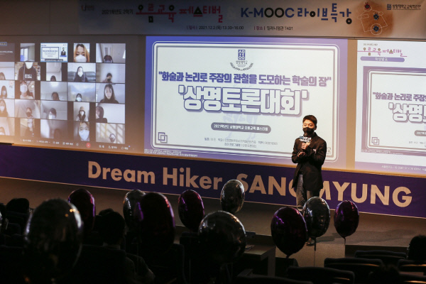 ●…상명대(총장 홍성태)는 2일 서울과 천안의 양 캠퍼스에서 2021학년도 2학기 ‘상명 창의 융복합 통합성과대회 & K-MOOC 특강’을 동시에 개최했다고 3일 밝혔다. 학생의 창의성 발휘를 위해 창의 융복합 교육 과정을 운영하고 있는 상명대는 그동안 진행된 교육 성과를 공유하기 위해 이번 행사를 진행했다.
