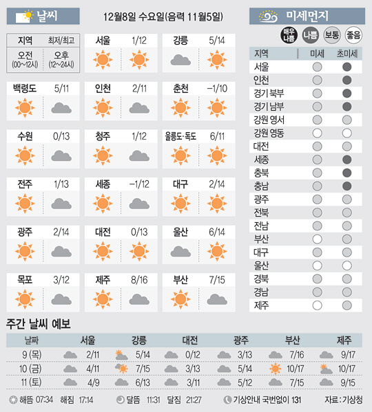 <날씨이야기>12월8일 수요일(음력 11월5일)