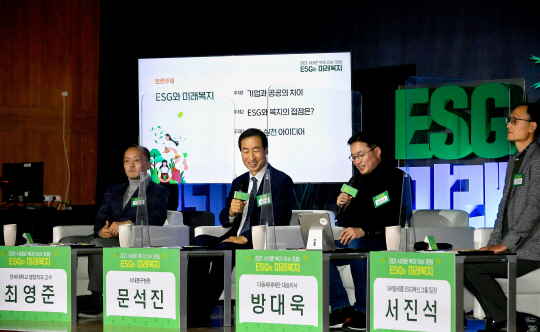 ‘ESG와 사회복지의 동행’을 주제로 강연한 서진석 SK텔레콤 ESG 추진그룹 부장은 기업 활동을 통해 사회 혁신을 이루고 지역사회 문제를 해결한 사례를 소개했다. 문석진 서대문구청장은 서대문구의 △아이스팩 공유 사업과 어르신 일자리 연계 △100가정 보듬기 및 행복 더 나누기 사업과 기업 활동 연계 △안산 무장애 자락길 조성 등을 예로 들며 지방정부 행정의 ESG 접목 방안을 제시했다. 방대욱 다음세대재단 대표이사와 앞선 발표자들의 대담에선 공공·민간·비영리 분야 간 ESG 협업과 참여 촉진 방안이 논의됐다.