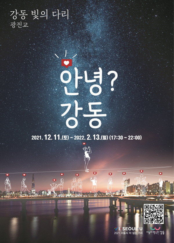 이정훈 강동구청장은 “주민들이 ‘강동 빛의 다리’에서 희망찬 새해를 맞이하길 바라는 마음으로 준비했다”며 “코로나19로 위축된 주민들에게 따뜻한 위로와 희망을 주는 시설이 될 것”이라고 밝혔다.