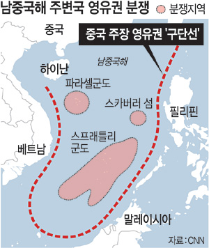 남중국해 영유권을 둘러싼 분쟁의 중심에는 중국이 1953년 자국 해양영토의 분계선이라며 선포한 구단선(九段線)이 있다. 구단선은 남중국해 주변을 따라 그은 U자 형태의 9개 선이다. 9개의 선을 하나로 이으면 남중국해 전체의 80% 이상이 중국의 영해에 포함되고 필리핀과 베트남, 말레이시아 같은 국가의 배타적경제수역(EEZ)과 겹친다. 이런 이유로 동남아시아 국가뿐만 아니라 국제사회는 중국의 구단선 주장을 부인한다. 실제 국제상설중재재판소(PCA)는 2016년 7월 “중국은 남해 구단선에 대해 역사적 권리(historic rights)를 주장할 법적 근거가 없다”며 “중국의 주장은 무효”라고 판시했다.