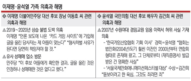 이준한 인천대 정치외교학과 교수는 17일 “대통령 선거가 성인군자를 뽑는 것은 아니지만, 그래도 평균 이상의 시민 정도는 돼야 하는 게 국민의 희망일 것”이라며 “평균에도 못 미치는 후보나 가족의 행태를 보면서 국민이 미래에 대한 희망보다 절망감이나 불신감이 커지지 않을까 굉장히 우려된다”고 말했다. 이 교수는 “뽑고 싶은 사람은 없고, 내 표가 아깝다는 생각만 들 수 있다”고 설명했다. 진중권 전 동양대 교수도 페이스북에 올린 글에서 “정치판이 사람을 질리게 한다. 희망이 안 보인다. 다가올 5년이 무섭다”고 밝혔다.