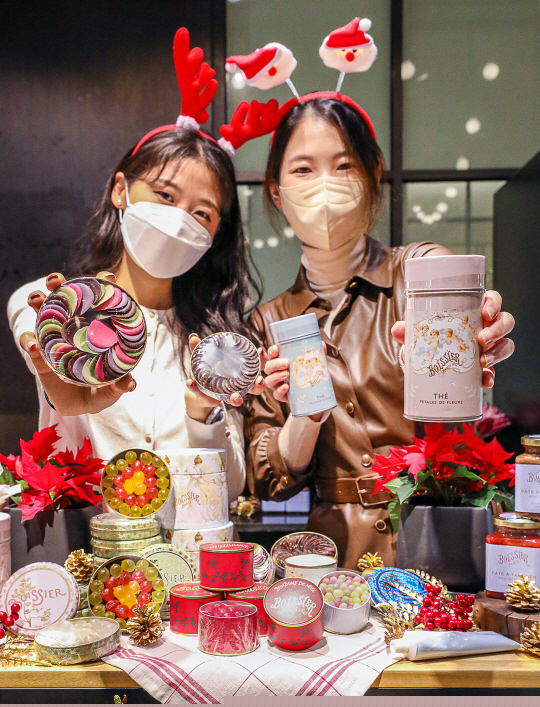 20일 경기 성남시 현대백화점 판교점 내 프랑스 디저트 브랜드인 브아시에 팝업스토어에서 직원들이 디저트 상품을 소개하고 있다.