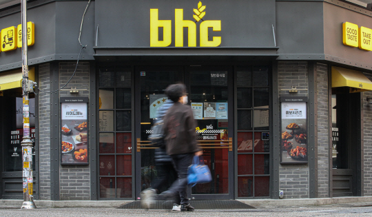 치킨프랜차이즈 브랜드 bhc가 21일부터 치킨 가격을 최대 2000원 인상한 가운데 한 행인이 매장 앞을 지나가고 있다.