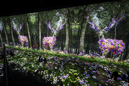 강릉의 지역 특성을 살려 ‘밸리(VALLEY)’라는 테마로 12개의 다채로운 미디어아트 전시를 선보인다. 아름다운 정령이 살아 숨 쉬는 신성한 숲(사진), 높고 낮은 지형과 협곡을 모티브로 제작된 미지의 동굴, 강원도를 담은 빛의 정원 등 새로운 작품들을 선보인다. 차를 마시는 F&B시설에서는 잔 위에 달이 뜨고 꽃들이 피어나는 미디어아트를 감상할 수 있다. ‘영원한 자연’을 주제로 제작된 작품들은 사운드와 향기가 함께 어우러진다.