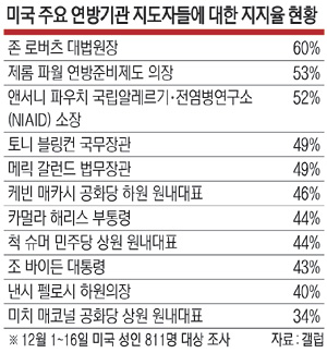 한편 갤럽이 “올해 미 연방정부에서 세간의 이목을 끌었던 지도자”로 꼽은 11명 중 바이든 대통령의 지지율은 9번째로 하위권에 머물렀다. 바이든 내각 구성원 중 지지율이 50%를 넘긴 이들은 로버츠 대법원장과 파월 의장, 파우치 소장 등 3명뿐이었다.