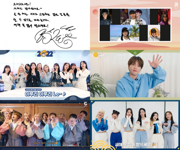 데뷔 한 달 된 신인 걸그룹 아이브는 “2021년에 다이브(팬클럽)를 만날 수 있어서 너무 뜻깊었고, 2022년에도 다이브와 함께할 수 있어서 설렌다”며 “2022년에 다이브와 자주 만날 수 있도록 더 노력하겠다. 아기 호랑이처럼 기세 좋은 한 해가 되시길 바라고, 아이브와 함께 다이브 여러분이 소원하는 모든 것들이 이루어지는 해가 되었으면 좋겠다”고 덧붙였다.