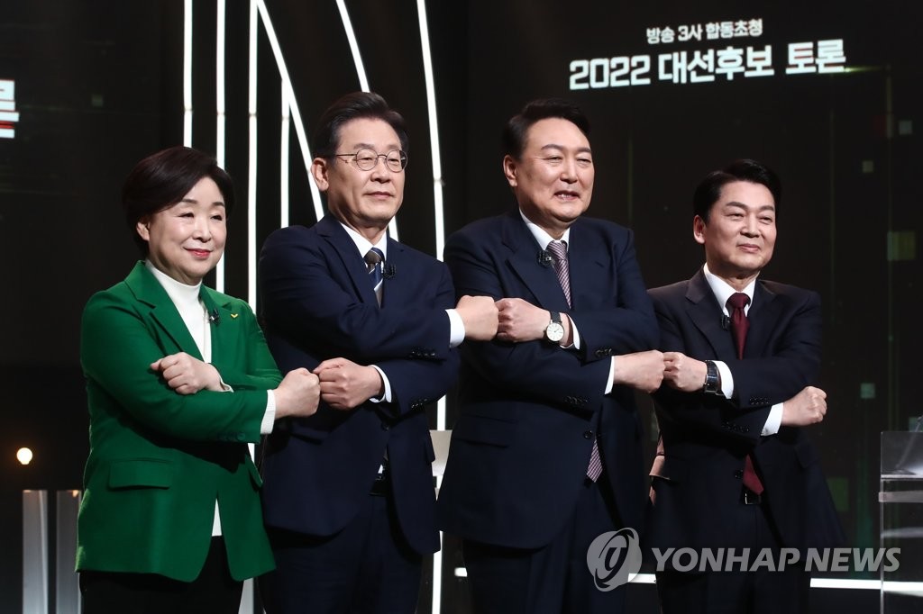 더불어민주당 이재명, 국민의힘 윤석열, 국민의당 안철수, 정의당 심상정 대선 후보 측은 5일 오후 중구 프레스센터에서 TV토론 관련 실무협의를 진행했다.