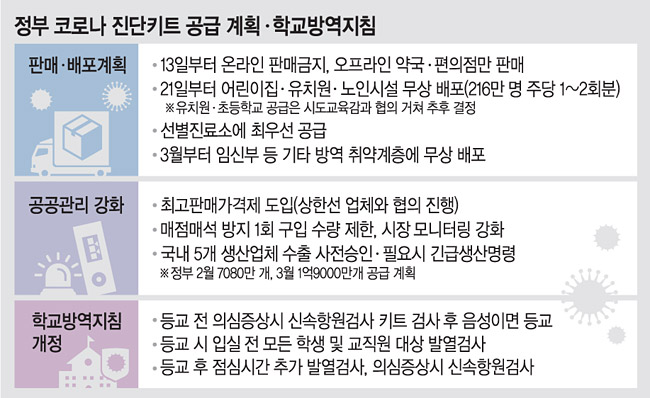 이날 정부의 ‘신속항원검사 키트 수급 대응 계획’ 발표로 13일 이후에는 키트 판매를 못 하게 되면서 온라인 유통업체들은 1만4000원 정도를 받던 키트(2개 1세트) 가격을 2만∼3만 원으로 올려받았다. 키트 1개를 10만 원이 넘는 가격에 판매하는 유통업체까지 있었다. 폭리 근절을 위해 정부가 ‘최고가격제’ 도입 계획을 언급했지만 오프라인 약국과 편의점에서 품귀현상이 발생하고 있어 소비자들도 일제히 구매에 나서는 모습이었다.