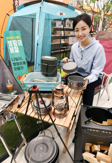 5일 서울 등촌동 홈플러스 강서점에서 모델이 캠핑용품을 선보이고 있다. 홈플러스는 오는 20일까지 마이홈플러스 멤버십 회원을 대상으로 최대 40%의 할인 혜택을 제공하는 ‘나들이·캠핑용품 모음전’을 진행한다.