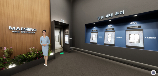 한미글로벌은 분양을 앞두고 사내 D/T추진실을 통해 메타버스를 활용한 분양 홍보관을 구축했다. 메타버스 내에서 프로젝트 참여자들이 각종 자료와 일정을 공유하고 회의도 할 수 있는 디지털 워룸(War Room)도 구현했다. 이에 따라 관심 고객들은 여의도 현대마에스트로 홈페이지에서 메타버스 홍보관으로 입장할 수 있으며 이곳에서 브랜드 스토리는 물론 세대 타입, 주변 입지, 커뮤니티 등의 다양한 시설 정보를 한눈에 확인할 수 있다. 또 인공지능(AI) 휴먼을 통한 상세 설명 듣기와 상담원과의 실시간 채팅이 가능하며 전시품목, 유무상 옵션도 적용해 확인할 수 있다.