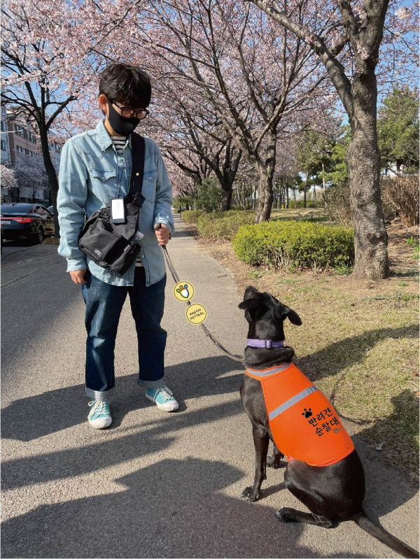 서울시 자치경찰위원회는 반려견과 산책하면서 동네 방범 활동을 하는 ‘반려견 순찰대’(사진)를 전국 최초로 강동구에서 시범 운영한다고 12일 밝혔다. 반려견 순찰대는 주민이 반려견과 함께 산책하다 범죄 위험 요소를 발견하거나 위급한 상황이 벌어지면 112에 신고하는 주민참여형 치안정책이다.