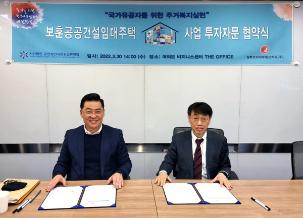 국가 유공자와 유가족을 위한 공공임대주택 공급 사업이 본격화된다. 유엔참전국문화교류연맹은 최근 부동산 종합 컨설팅기업 알투코리아부동산투자자문과 ‘보훈공공건설임대주택 사업을 위한 사업투자자문 협약’(사진)을 했다고 28일 밝혔다.