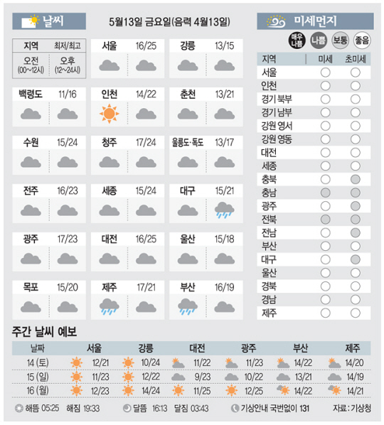 <날씨이야기>5월13일 금요일(음력 4월13일)