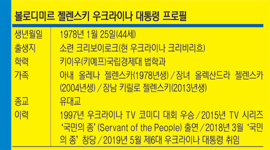 득표율 73%의 압도적인 지지로 당선됐지만, 1978년생 젊은 리더가 맞이한 상황은 녹록지 않았다. 특히 호시탐탐 우크라이나 영토를 노리던 러시아의 야욕에 맞서야 했다. 러시아는 끝내 지난 2월 24일 우크라이나를 침공했고, 젤렌스키 대통령의 리더십은 시험대에 올랐다. 일각에선 러시아 침공을 예상하지 못한 젤렌스키 대통령의 경험 부족을 탓했고, 코미디언 출신의 무능한 정치인이라는 비아냥도 터져 나왔다.