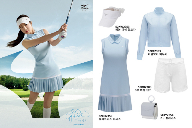 ○… 미즈노골프 어패럴이 한국여자프로골프(KLPGA)투어를 대표하는 미녀골퍼 안신애 프로와 함께한 ‘썸머 플레이룩(Summer Play Look)’을 공개했다. 2022년 여름을 겨냥해 청량감이 느껴지는 라이트 블루 컬러를 사용, 다양한 여성 골프웨어를 출시했다. 민소매 원피스는 슬림한 실루엣과 밑단 플리츠 주름이 더해진 여성스러운 스타일과 함께 신축성 있고 부드러운 촉감의 소재로 스윙 시 편안함을 제공한다. 짧은 기장의 바람막이와 3부 화이트 팬츠도 여심을 사로잡을 디자인으로 출시됐다.