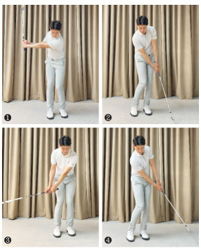 가장 대표적인 연습 방법은 스윙을 아주 작게 해서 가까운 거리를 쳐보는 것이다. 많은 아마추어 골퍼가 짧은 어프로치임에도 불구하고 사진1처럼 스윙 크기가 과도하게 크다. 그대로 치면 멀리 넘어간다는 것을 본능적으로 알아채고, 순간적으로 다운스윙하며 감속을 시키다 보니 사진2와 같은 멈칫하는 현상이 발생해 터무니없는 실수가 나온다. 이를 개선하기 위해서는 우선 1∼2m 정도의 가까운 거리를 보내는 연습을 통해 스윙 크기를 줄여본다. 이때 핵심은 사진3, 4처럼 백스윙을 든 만큼 폴로스루도 비슷하게 보내주며 내가 정한 스윙 크기를 믿고 자신 있게 쳐야 한다는 점이다. 여기서 핵심은 스윙 크기를 작게 하면 생각보다 공이 멀리 가지 않기 때문에 자신 있게 쳐도 된다는 것이다. 크기는 작지만 자신 있는 스윙을 연습하며 얼마나 공이 날아가는지 점검하다 보면 작은 스윙 크기에 대한 자신감이 붙을 것이다.