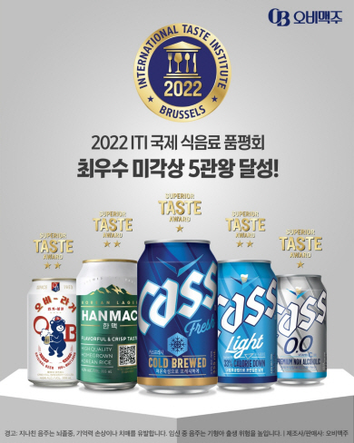오비맥주의 ‘카스 프레시’ ‘카스 라이트’ ‘카스 0.0’ ‘한맥’ ‘오비라거’가 ‘국제식음료품평원(ITI)’이 주최한 ‘2022 ITI 국제식음료품평회’에서 각각 ‘국제 우수 미각상(Superior Taste Award)’을 수상했다고 오비맥주가 지난 21일 밝혔다.
