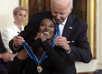 바이든 대통령은 이날 백악관 이스트룸에서 취임 후 처음으로 자유의 메달 수여식을 개최하고 바일스 등 17명에게 메달을 전달하며 “이것이 미국이다”라고 말했다. 자유의 메달은 미 대통령이 민간인에게 줄 수 있는 최고 영예다.