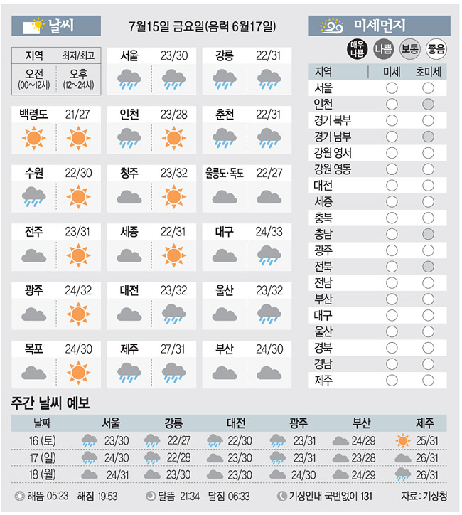 <날씨이야기>7월15일 금요일(음력 6월17일)