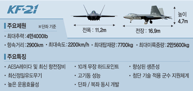 KF-21은 2001년 한국형 전투기 개발 선언 후 21년 4개월 만에 세계 최고 성능의 유럽제 미티어(METEOR) 공대공미사일 4발(비활성탄)을 탑재한 채 시속 400㎞로 33분간 첫 비행에 성공했다. 이번 성공으로 우리나라는 세계 8번째 초음속 전투기 개발 국가 대열에 다가서게 됐다.