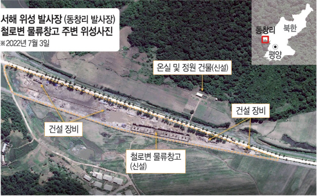 20일(현지시간) 미국의 북한 전문매체 ‘분단을 넘어’(Beyond Parallel)에 따르면, 지난 3일 서해위성발사장 위성 사진에는 철로와 연결된 대형 창고 건설 모습과 발사장 동쪽 지역 3곳에서 이뤄지는 굴착작업이 포착됐다. 또 근로자를 위한 숙소 3곳과 지원단지가 새로 들어섰고 기존 두 개의 지원단지에도 새로운 활동이 나타난 것으로도 파악됐다.