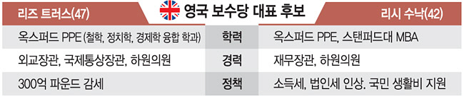보리스 존슨 영국 총리의 후임 자리를 놓고 다투게 될 최종 2인 후보가 리시 수낙 전 재무장관과 리즈 트러스 외교장관으로 결정됐다. 둘 다 ‘40대 젊은 피의 옥스퍼드대 출신’이라는 공통점이 있지만, 최근 영국이 40년 만에 최고 물가상승률로 몸살을 앓으며 가장 뜨거운 선거 쟁점으로 떠오른 경제 문제를 두고는 해법이 갈린 상태다. 특히 수낙 전 장관은 증세를, 트러스 장관은 감세를 주장하고 있다. 양자 간 대결의 최종 결과는 오는 9월 5일 발표될 예정으로 치열한 경쟁 때문에 결과는 오리무중이란 평가가 나온다.