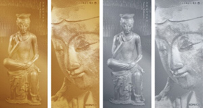 22일 한국조폐공사에 따르면 이번에 출시한 기념메달 앞면에는 입체감을 살린 반가사유상의 전체적인 모습이, 뒷면에는 미소를 띤 반가사유상의 얼굴이 담겼다. 반가사유상은 인간의 생로병사를 고민하면서 명상에 잠긴 싯다르타 태자의 모습을 형상화한 작품이다. 지난 5월 출시했던 반가사유상 기념메달에 이어 조폐공사와 국립중앙박물관이 공동 기획한 두 번째 기념메달이다. 반장식 조폐공사 사장은 “국립중앙박물관과 공동으로 한국을 대표하는 국보 반가사유상을 기념메달로 제작하게 돼 뜻깊다”며 “앞으로도 문화유산을 주제로 다양한 형태의 기념메달을 꾸준히 선보일 예정”이라고 말했다.