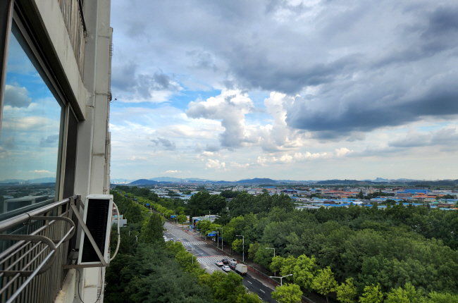 커튼을 젖히고 베란다 밖을 내다보니